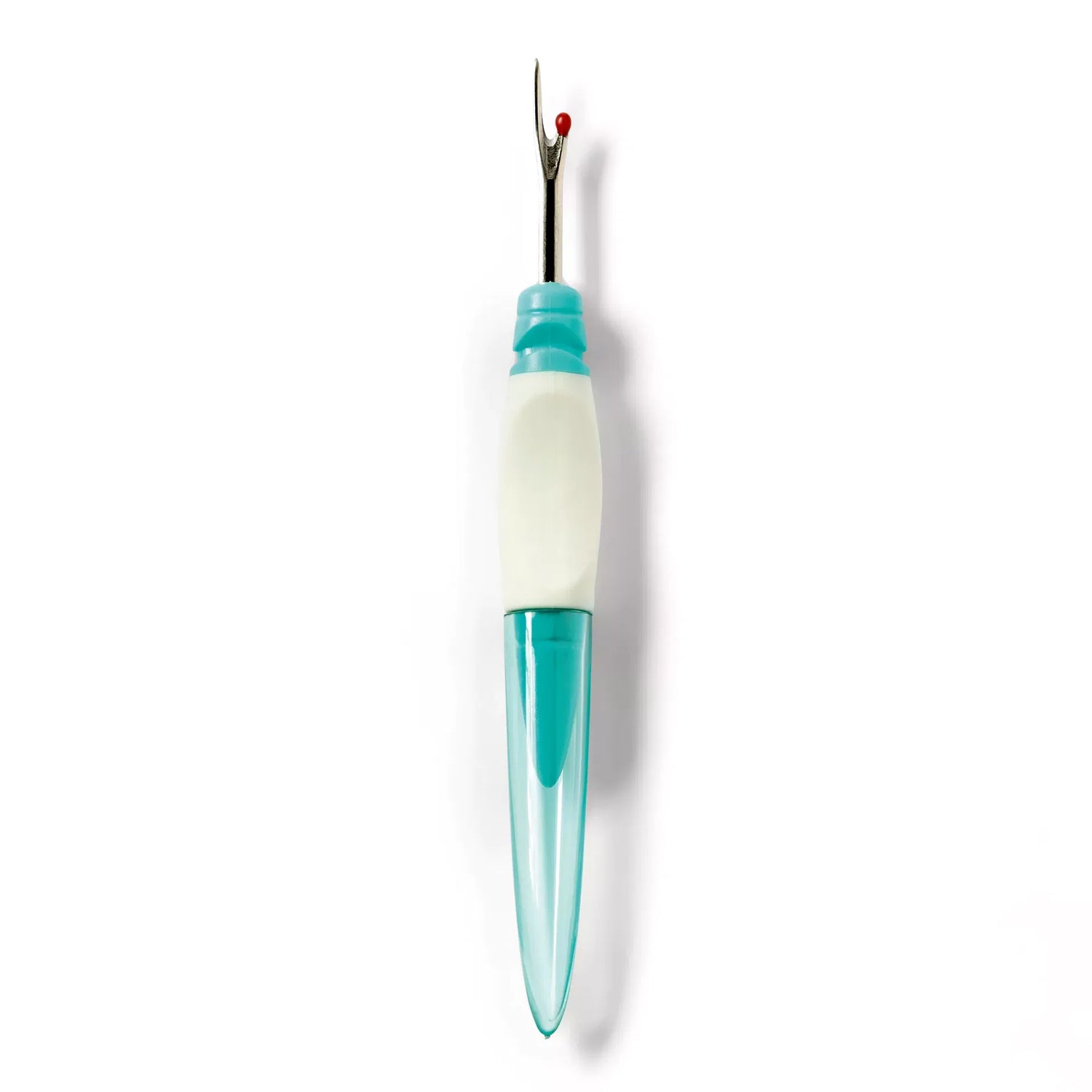 De eindkap kun je op het uiteinde van het handvat klikken om het te verlengen. Handig bij het loshalen van langere steken.