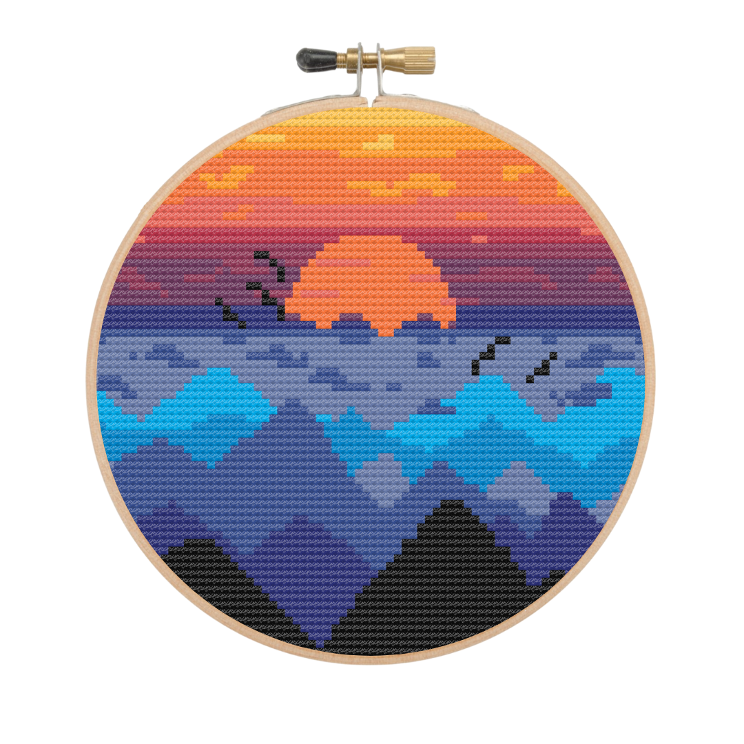 This mountain embroidery pattern is perfect for beginners because you only use full cross stitches. Cross stitch is an embroidery stitch that's easy to master. The Dutch instructions explain how to create beautiful embroidery from start to finish. Size: Embroidered on 14-count aida, the embroidery measures 13.7 x 13.7 cm. When finished, the embroidery will look best in a 13 cm hoop. The hoop will then cover a slightly larger section of the piece. This is a deliberate design, as it creates a beautifully full effect!You will find this in your download: