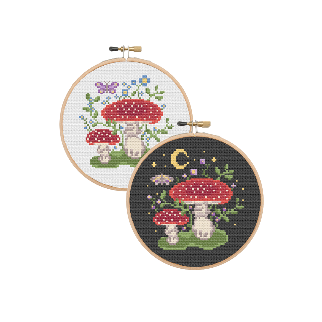 PDF: Mushroom Day & Night Embroidery Pattern - Digital Download