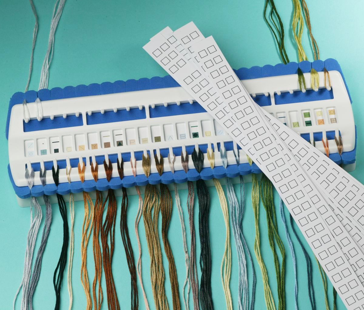 Draw the color symbols on the included card and slide it into the yarn holder. The foam makes it easy to hold and remove yarn.Features of the needle holder:
