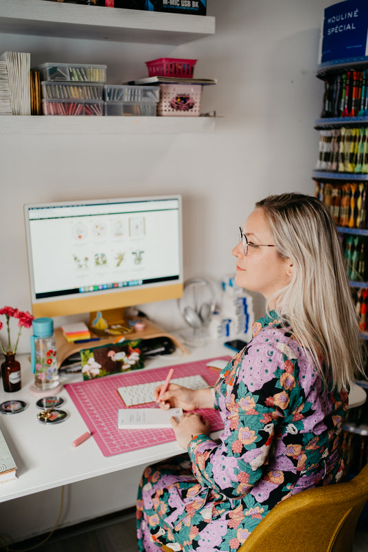 Ik creëer moderne borduurpatronen waar jij direct mee aan de slag kan. Daarnaast zorg ik voor een goed gevulde webshop met de leukste borduurpakketten en beste materialen.