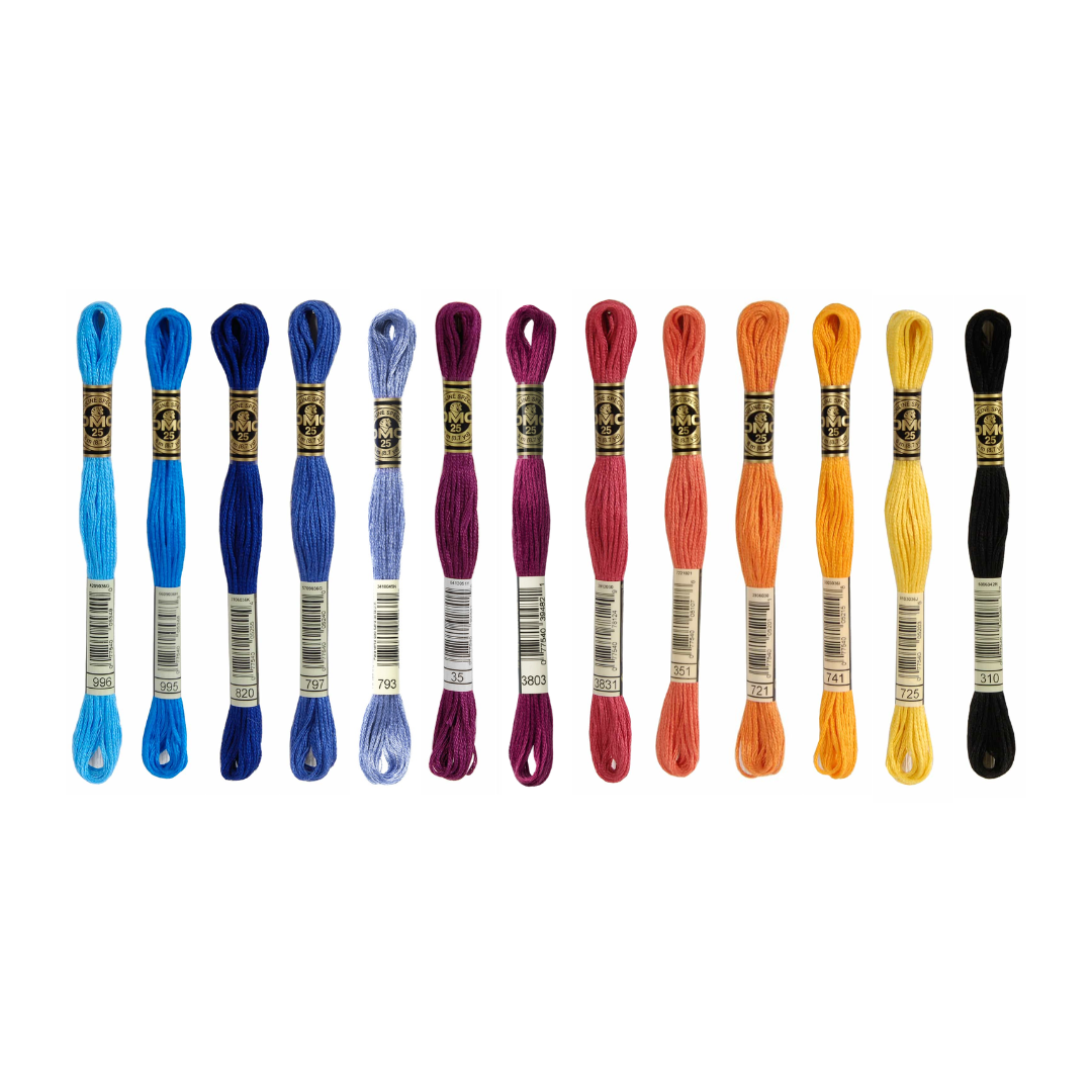 Deze set bevat 13 volledige strengen DMC borduurgaren die je kan gebruiken bij het In de bergen borduurpatroon. Ga je het patroon borduren? Bestel deze er dan los bij. Deze garenset is natuurlijk ook gewoon een mooi palet om je collectie borduurgaren mee aan te vullen en je eigen creaties mee te maken. Deze kleurnummers zitten in deze garenset: